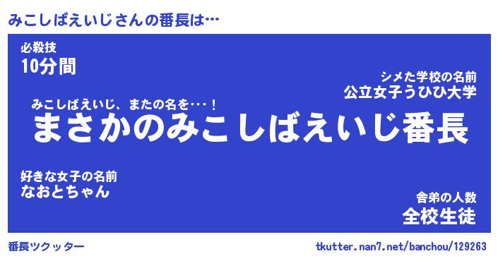 | 伝説のあだ名 | 『伝説のスナイパーみこしばえいじ』 |
