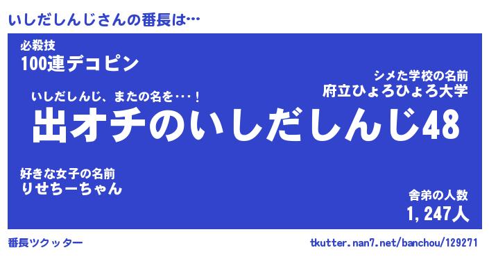 | ヘコむあだ名 | 『いしもー』『牛乳』『いし太郎』 |