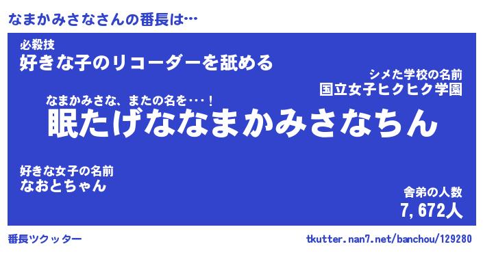 | 肩書あだ名 | 『なまかみさな店長』『なまかみさな塾長』 |