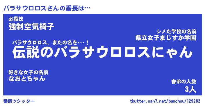 | 恥ずかしいあだ名 | 『プリティーバラサウロロス』『バラちん』 |