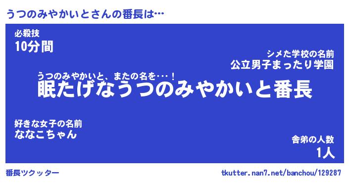 | 2回繰り返すあだ名 | 『うつうつ』『ううつつ』『いじいじ』 |