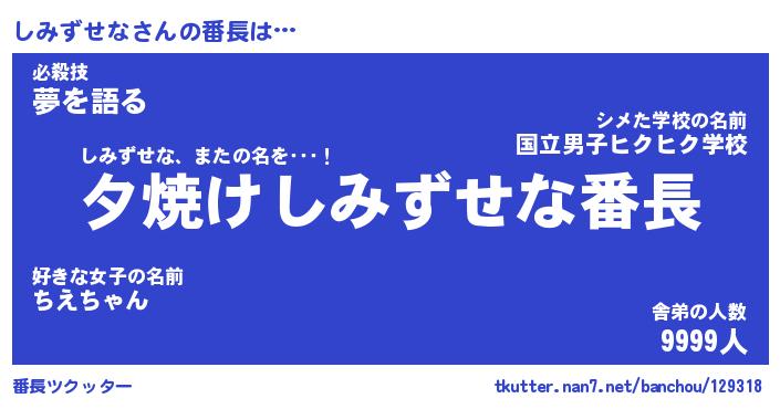 | ヒーロー風カッコイイあだ名 | 『スーパーシミズセナ』『銀牙騎士シミ』 |