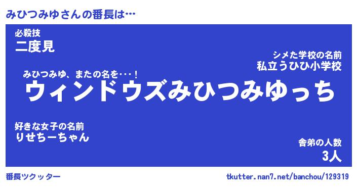 | ファンタジー風あだ名 | 『ミヒフェル』『エターナルミヒツミユー』 |