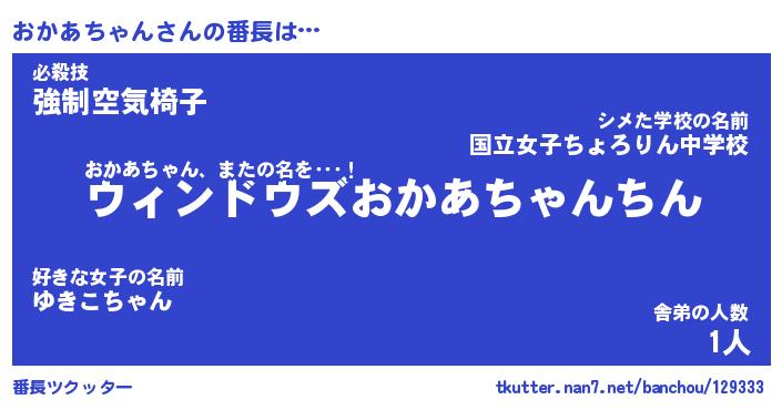 | 女子向けラノベタイトル風あだ名 | 『(仮)おかあちゃんのやんごとなき事情』 |