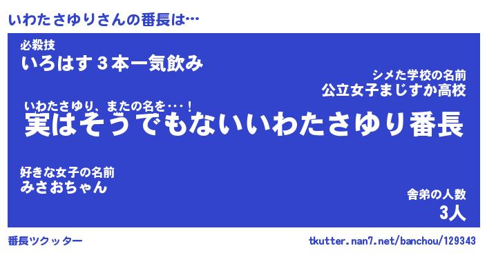 | ヒーロー風カッコイイあだ名 | 『スーパーイワタサユリ』『魔戒騎士イワ』 |