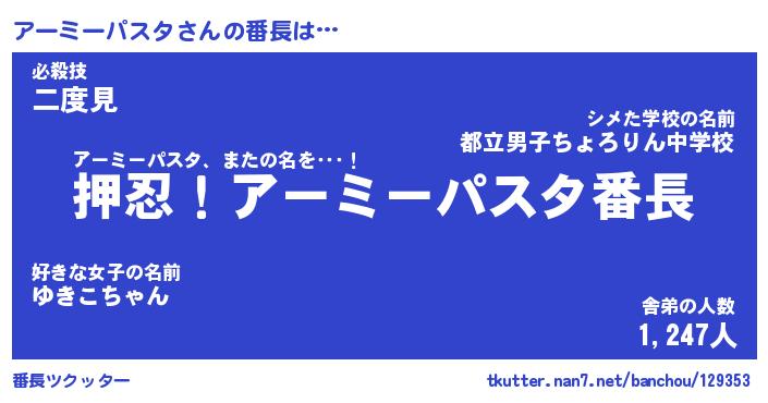 | 肩書あだ名 | 『アーミーパスタ店長』 |