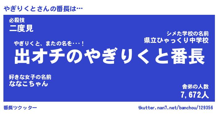 | 2回繰り返すあだ名 | 『やぎやぎ』『ややぎぎ』『ぬるぬる』 |