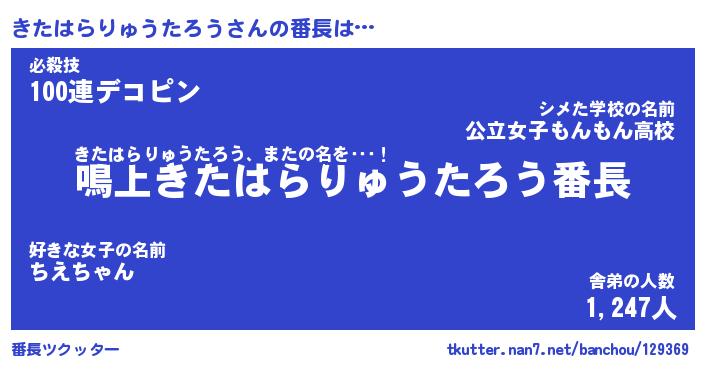 | ヒーロー風カッコイイあだ名 | 『スーパーキタハラリュウタロウ』 |