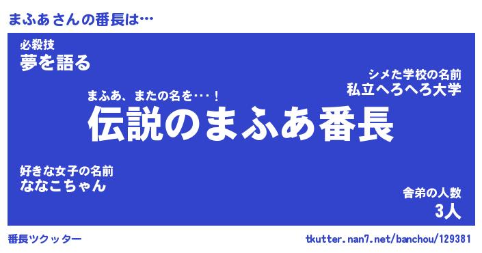 | 肩書あだ名 | 『まふあ社長』『まふあ総理大臣』 |