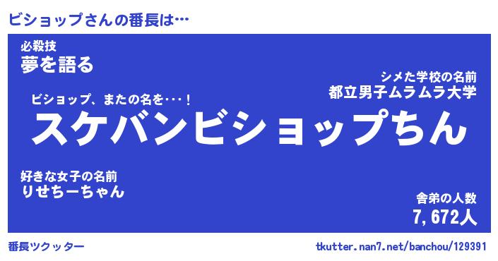 | ファンタジー風あだ名 | 『ビシフェル』『エターナルビショップー』 |