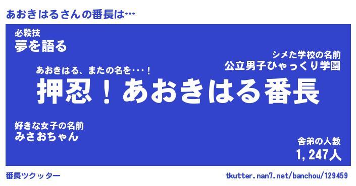 | ファンタジー風あだ名 | 『アオフェル』『エターナルアオキハルー』 |