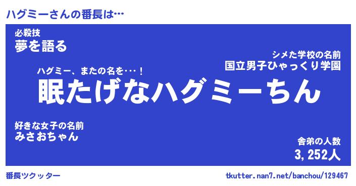 | ヘコむあだ名 | 『ハグにー』『つくし』『ハグを』 |