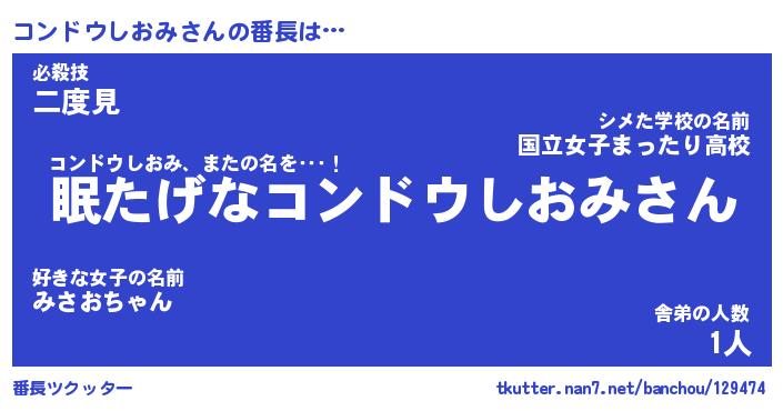 | 肩書あだ名 | 『コンドウしおみ店長』 |