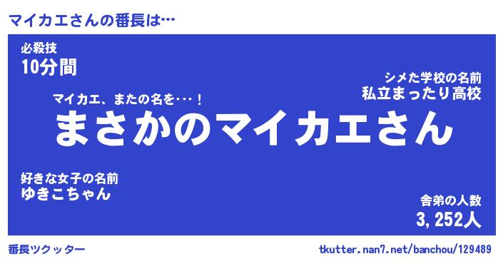 | 意味不明あだ名 | 『ペロリンマイカエ』『永久保存マイカエ』 |
