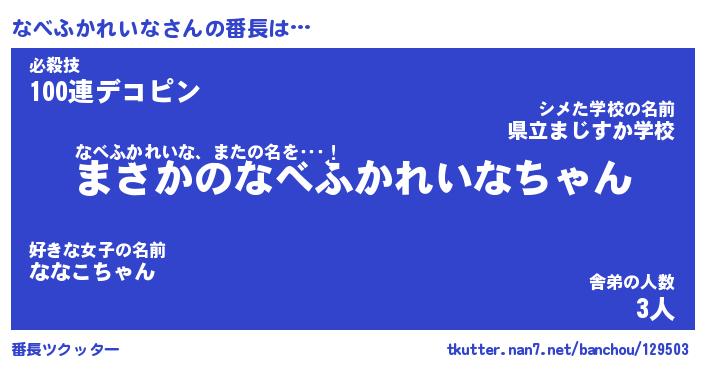 | ヒーロー風カッコイイあだ名 | 『スーパーナベフカレイナ』 |