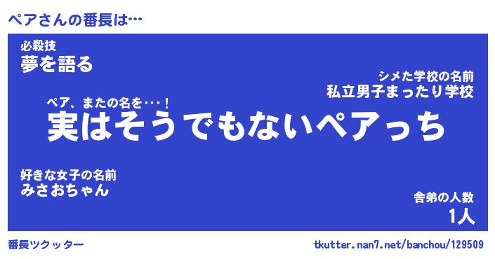 | 意味不明あだ名 | 『ペロリンペア』『ペアフォーエバー』 |