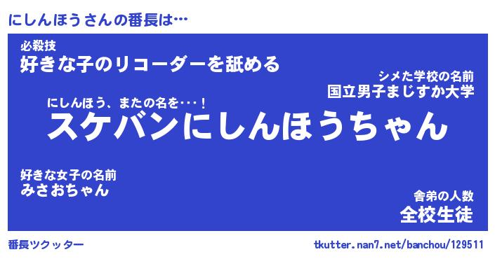 | ヘコむあだ名 | 『にしふぇ~』『なまこ酢』 |