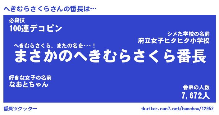 | 男性向けラノベタイトル風あだ名 | 『へきむらさくらの憂鬱』 |