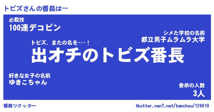 | ポケモン風あだ名 | 『トビチュウ』『トビズダネ』 |