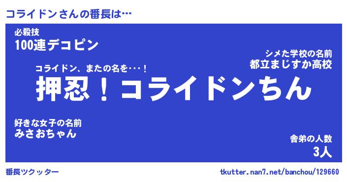 | ヒーロー風カッコイイあだ名 | 『スーパーコライドン』『天弓騎士コラ』 |