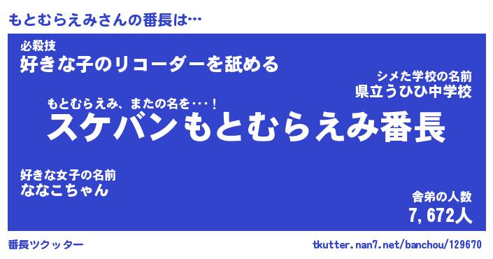 | 肩書あだ名 | 『もとむらえみ社長』『もとむらえみ校長』 |