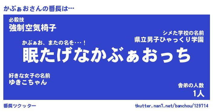 | 意味不明あだ名 | 『ペロリンかぶぁお』『永久保存かぶぁお』 |