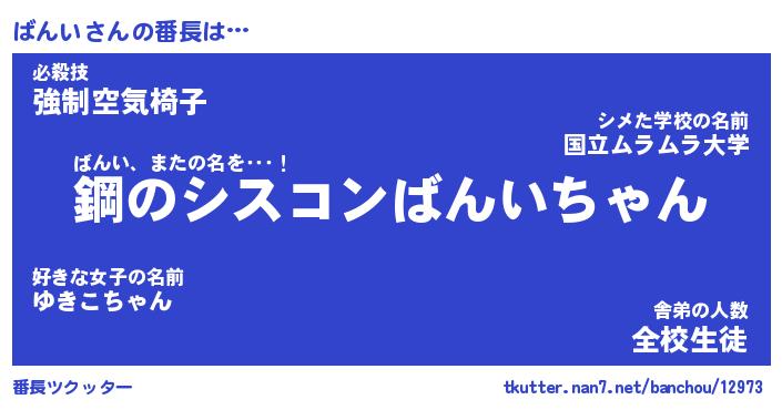 | ヒーロー風カッコイイあだ名 | 『スーパーバンイ』『ウルトラばんいマン』 |