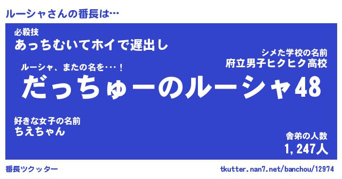 | ファンタジー風あだ名 | 『ルーフェル』『エターナルルーシャー』 |