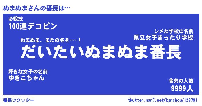 | 意味不明あだ名 | 『ペロリンぬまぬま』『永久保存ぬまぬま』 |