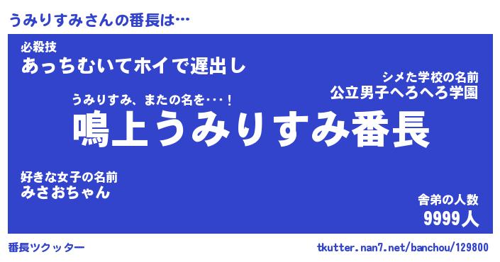 | 伝説のあだ名 | 『封印されしスナイパーうみりすみ』 |