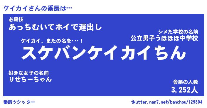 | ポケモン風あだ名 | 『ケイチュウ』『ケイカダネ』 |