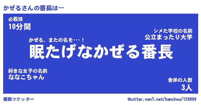 | 伝説のあだ名 | 『封印されしスナイパーかぜる』 |