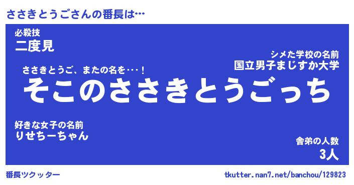 | ヒーロー風カッコイイあだ名 | 『スーパーササキトウゴ』『炎刃騎士ササ』 |
