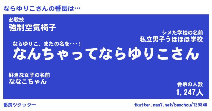 | ヒーロー風カッコイイあだ名 | 『スーパーナラユリコ』『銀牙騎士ナラ』 |