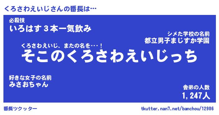 | 意味不明あだ名 | 『ペロリンくろさわえいじ』 |