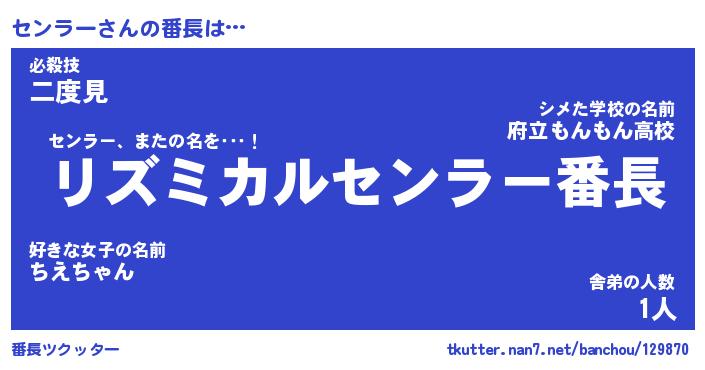 | 男性向けラノベタイトル風あだ名 | 『センラーの憂鬱』 |