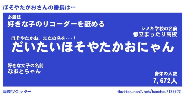 | 肩書あだ名 | 『ほそやたかお御曹司』 |