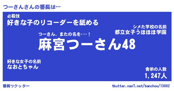 | 意味不明あだ名 | 『ペロリンつーさん』『永久保存つーさん』 |