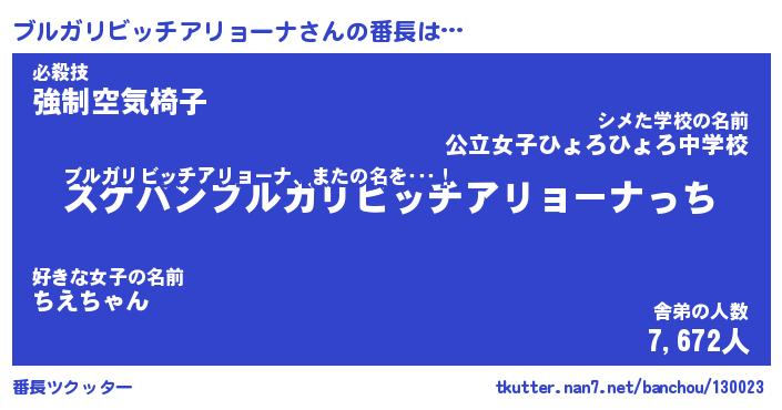 | 意味不明あだ名 | 『ペロリンブルガリビッチアリョーナ』 |