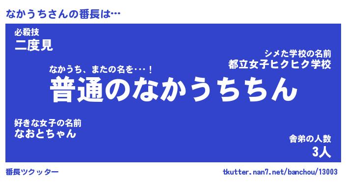 | 男性向けラノベタイトル風あだ名 | 『なかうちの憂鬱』 |
