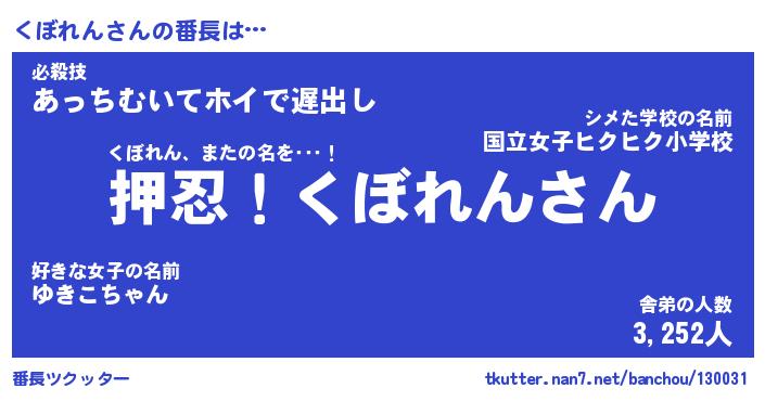 | ピコ太郎風あだ名 | 『クコ次郎』『ピク八郎』『クボ五郎』 |