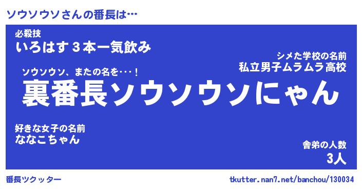 | ヒーロー風カッコイイあだ名 | 『スーパーソウソウソ』『魔戒騎士ソウ』 |