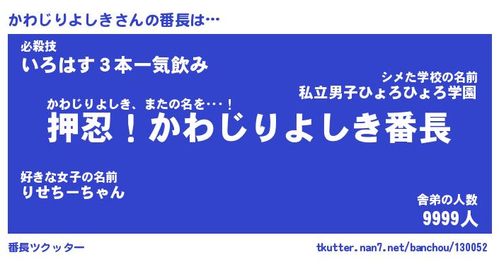 | 肩書あだ名 | 『かわじりよしき御曹司』 |