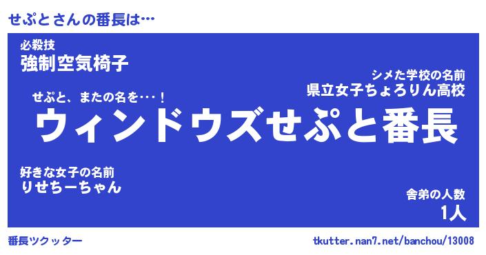 | ヘコむあだ名 | 『せぷふぇ~』『つくし』『せぷ太郎』 |