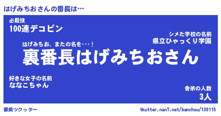 | 肩書あだ名 | 『はげみちお御曹司』『はげみちお班長』 |