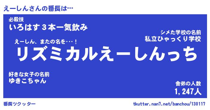 | 意味不明あだ名 | 『ペロリンえーしん』『永久保存えーしん』 |
