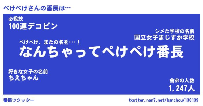| 意味不明あだ名 | 『ペロリンぺけぺけ』『永久保存ぺけぺけ』 |