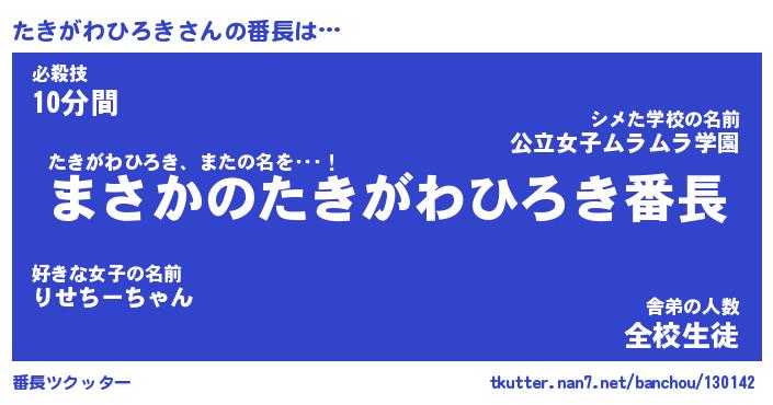 | 肩書あだ名 | 『たきがわひろき店長』 |