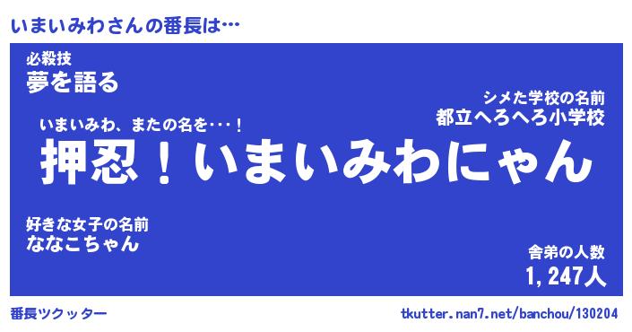 | 肩書あだ名 | 『いまいみわ社長』『いまいみわ国家主席』 |