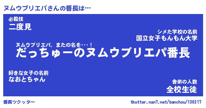 | 男性向けラノベタイトル風あだ名 | 『ヌムウブリエパの憂鬱』 |